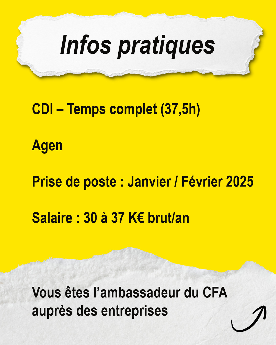 Nous recherchons un(e) Chargé(e) de Relations Entreprises en CDI – Temps complet, basé(e) à Agen, pour une prise de poste janvier/février 2025.