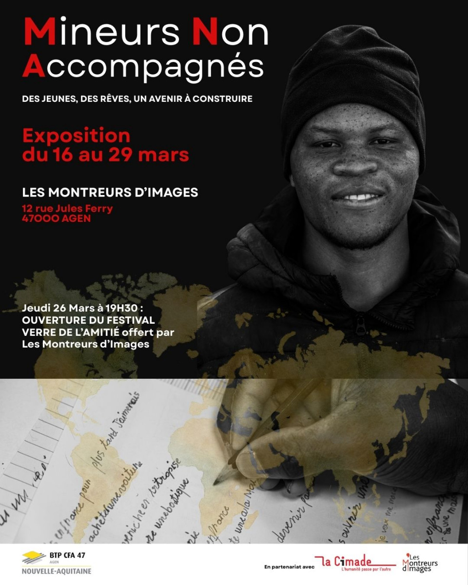 Du 16 au 29 mars 2026, le CFA BTP d’Agen, en partenariat avec La Cimade, présente une exposition engagée au cinéma Les Montreurs d’Images à Agen (12 rue Jules Ferry).