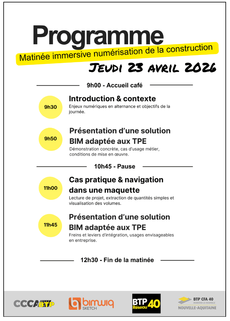 Le BTP CFA 40 vous invite à une matinée d’échange dédiée aux entreprises pour découvrir une approche accessible, pragmatique et adaptée à vos réalités terrain.