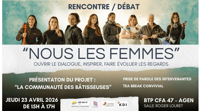 Dans le cadre du projet de féminisation des métiers du bâtiment, mené en partenariat avec la CAPEB 47, le BTP CFA d’Agen a le plaisir de vous inviter à une conférence inspirante intitulée :